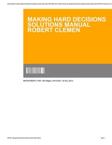 Read Online making hard decisions solution manual Doc By Click Button. making hard decisions solution manual it’s easy to recommend a new book category such as Novel, journal, comic, magazin, ect. You see it and you just know that the designer is also an author and understands the challenges involved with having a good book. You can easy klick for detailing book and you can read it online, even you can download it
